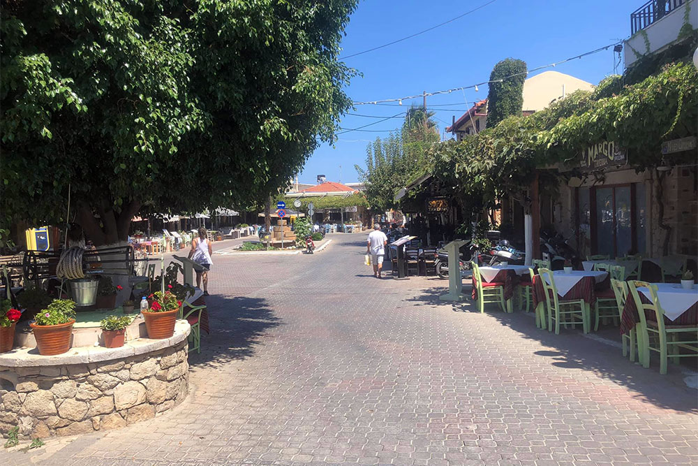 East of the church stretches the main beach of Analipsis, a large sandy beach with umbrellas and loungers West of the church the coast is rocky. Few people go swimming there, unless they want to enjoy the peace and quiet or a pleasant walk under the tamarisk trees. If you like fishing from the shore, the rocks are the best place for your sport. Continuing west, you come to a small, sandy cove, ideal for when the wind is blowing and the sea off the other beaches is rough. At the end of the road is yet another sandy beach, at the mouth of the River Aposelemis, with a few ducks waddling about and attracting the attention of visitors.